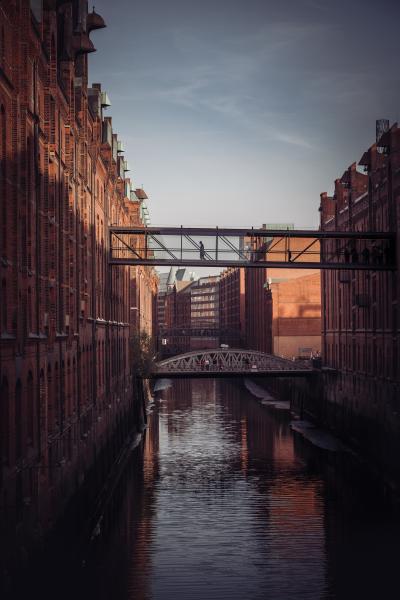 This is one of the most famous places in Hamburg. This is the old warehouse district of the old port in Hamburg. It was build between 1883 and 1927 as a duty free zone to store and ship goods that arrived at Hamburg's port. It's the world's largest historical warehouse district and belongs to the UNESCO world heritage since 2015.