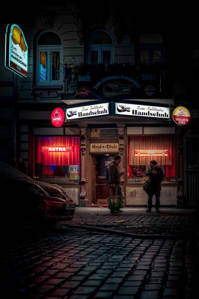 The bar "Goldener Handschuh" (Golden Glove) is located in the heart St. Pauli - the world famous red light district of Hamburg.