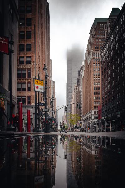 After two days of heavy rains, the rain is finally almost over. You walk around Times Square looking for something to eat before heading back to the hotel to dry your clothes. The light is beautiful and reflected everywhere on the wet streets. It's a good night.